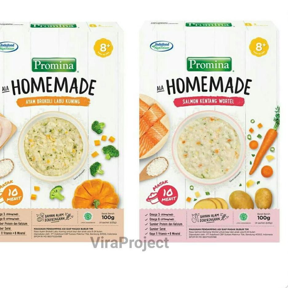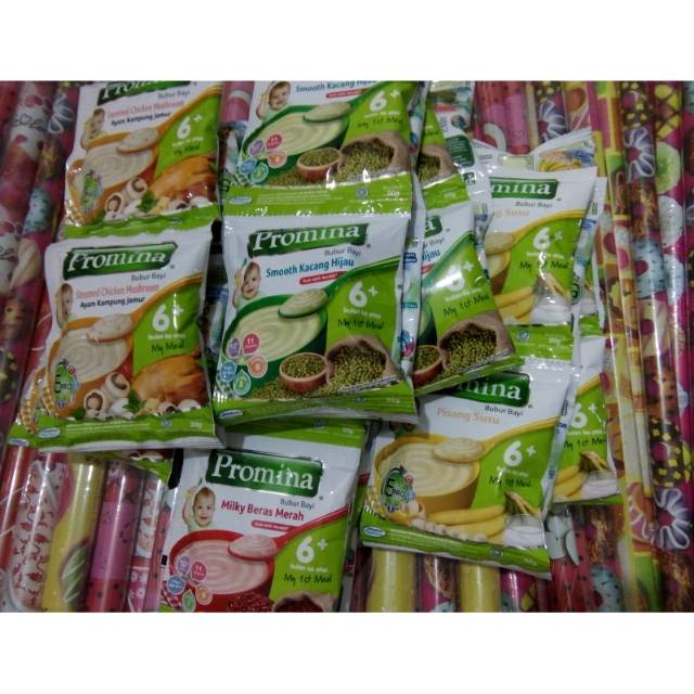 Promina adalah merek bubur bayi promina bubur tim daging dan brokoli terbuat dari beras, susu skim bubuk, minyak ikan, vitamin bubur bayi promina. Promina bubur bayi kacang hijau memiliki tekstur halus untuk pengenalan makanan padat pertama si kecil.